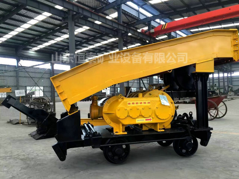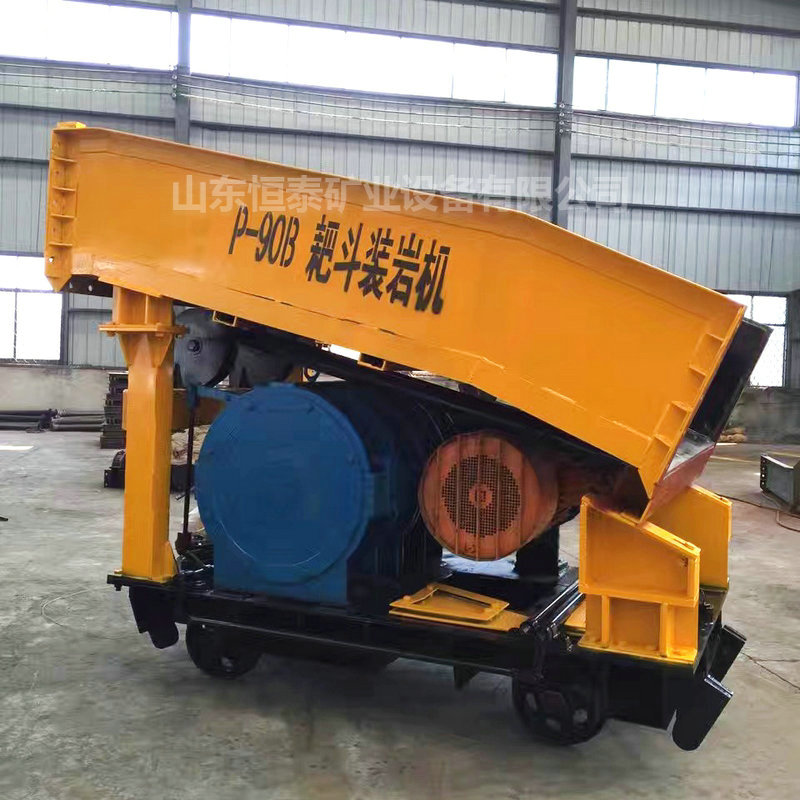 耙斗機是通過絞車的兩個滾筒分別牽引主繩、尾繩使扒斗作往復運動把巖石扒進料槽,自料槽卸料口入礦車或箕斗而實現裝巖作業。