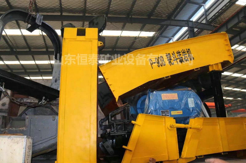 3、臺(tái)車上的操縱機(jī)構(gòu)、絞車、導(dǎo)向輪和進(jìn)料槽、中間槽、卸載槽。進(jìn)料槽的中部設(shè)有升降裝置,可旋轉(zhuǎn)螺桿調(diào)節(jié)簸箕口的高低,為了引導(dǎo)耙斗進(jìn)出和防止矸石撒落,在絞接部位還設(shè)有左右導(dǎo)向擋板;中間槽前后彎曲部位,各設(shè)有可裝卸耐磨的弧形板;卸載槽后部裝有緩沖作用的彈簧碰頭和撐腳。