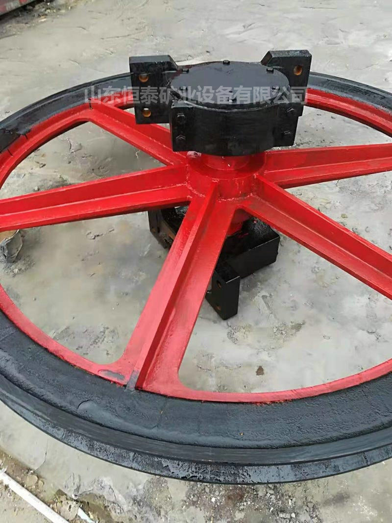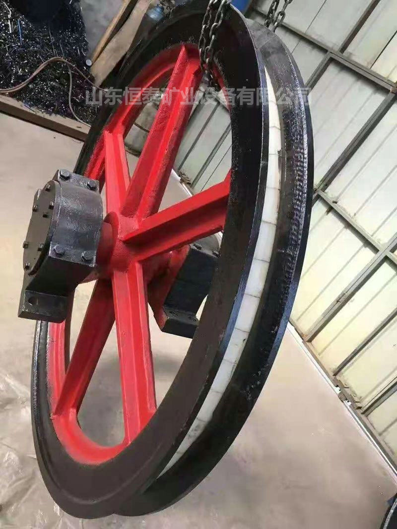 固定天輪安裝在井架上,作支撐,供礦井提升時支拖提升機卷筒到提升容器之間,引導鋼絲繩轉向之用。繩槽帶塑襯或膠塊,增加鋼絲繩的使用壽命。